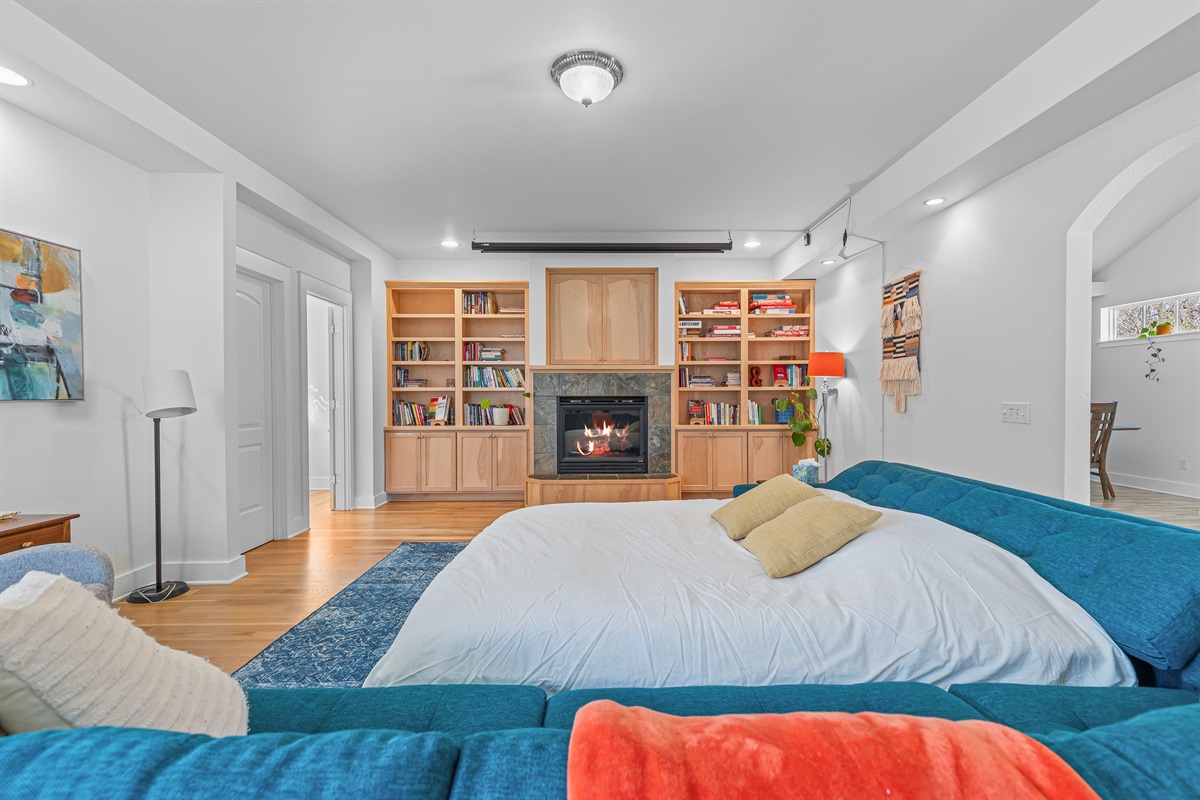 Relax on our large (111" by 111") sectional sleeper sofa and stream your favorite shows on our Smart TV (Roku) or just enjoy the fireplace that turns on with a flick of a switch. Enjoy access to Netflix, Hulu, Prime Video, and Apple TV by simply entering your password.