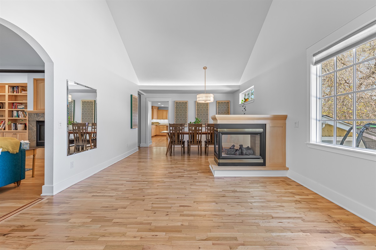 The spacious living room, dining room, and kitchen provide ample space for enjoying time with friends and family.