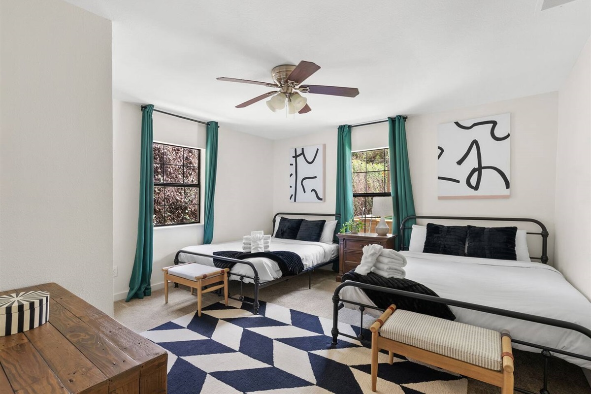 Bedroom 4 and 5: Bedroom 4 has a King Bed and bedroom 5 is packed with a queen bed, a full sized bed and a twin trundle (2 twins). Please note that the 4th and 5th bedrooms are combined. Unlike traditional setups, these rooms are creatively designed without a physical wall separating them, offering a truly distinctive and flexible accommodation experience. There is a full bathroom with bathtub that bedroom 4 and 5 share.
