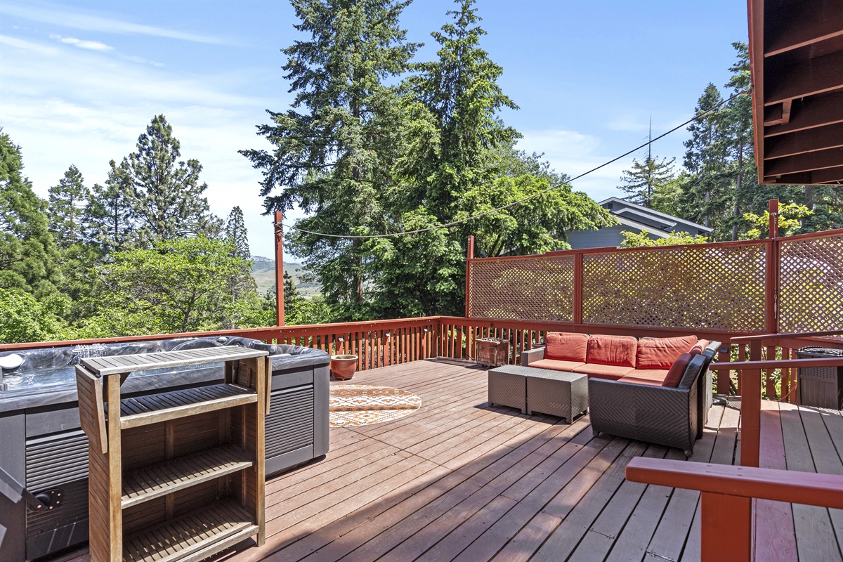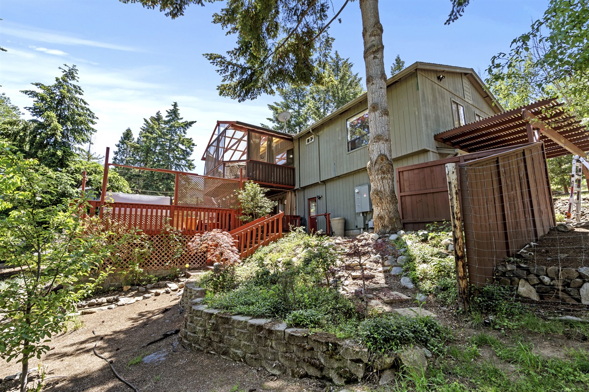 With a large backyard, multiple decks for lounging, and a cozy hot tub, this home is designed for your ultimate relaxation and privacy. The third bedroom is downstairs and quite removed from the other 2 bedrooms making this an ideal property for more than one couple desiring their own "wing" of the house.